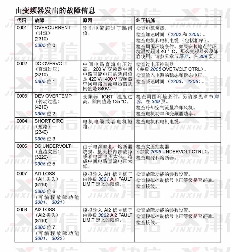 一、ABB ACS310變頻器0001-0008故障代碼,故障原因和糾正措施