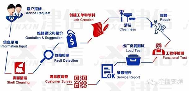 但在這個過程中,返修問題也始終伴隨津信服務業(yè)務發(fā)展而一直存在。為了實現(xiàn)對客戶“值得信賴的變頻器專家”承諾,2014年6月開始,上海津信在提高服務質量方面做了大量嘗試。