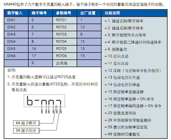 • P0703=1 ? ? 7號端子 ? ?數字輸入3的功能,ON/OFF1(接通正轉/停車命令1)