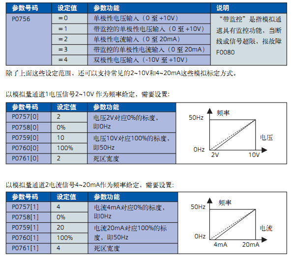 • P1000=2 ? ? ? ?頻率設定值的選擇:模擬量給定